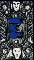 Strength - Three blue lines. Victory after struggle, strength and triumph. Mars, iron, all weapons, inner resolve and steel. "I am your defense".