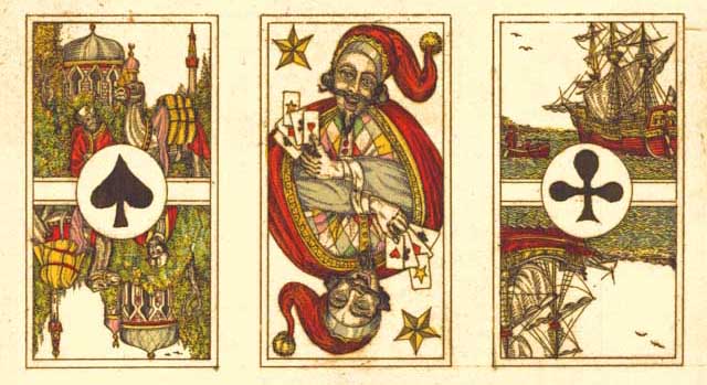Inspired by Piatnik's ‘Trappola’ of c.1890, with double-ended courts, a Jester and decorated Aces, t...