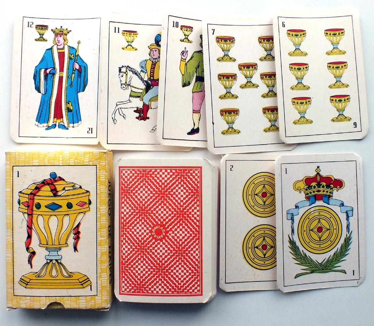 Above: Pavias playing cards made in Peru, c.1990. 40 cards in box.