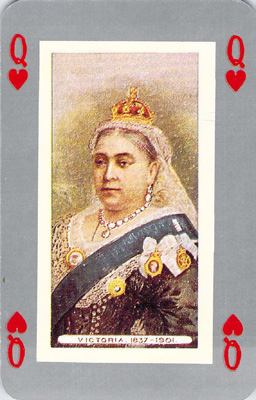Above: Queen Victoria in a ‘Portrait’ style (left), NYCC Illuminated Royal 1896, looking like a playing card. The Artistic card (right) has taken a lot more licence (Wills tobacco, 200th Anniversary 1986).