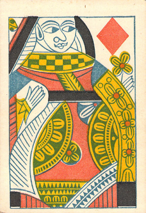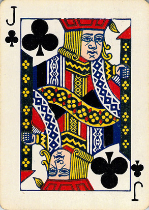 The fronts become double ended, making it much easier for players to handle the cards (and giving less away as they no longer had to rotate some cards to see what they are). Even more helpfully, the little indices in the corners were introduced - these help the players even more. These indices were a US innovation and so were the Jokers that also began to appear.