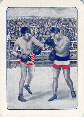Above: Card backs: an Austin advertising card (c.1950), and a souvenir back commemorating the Dempsey–Carpentier boxing match (1921).