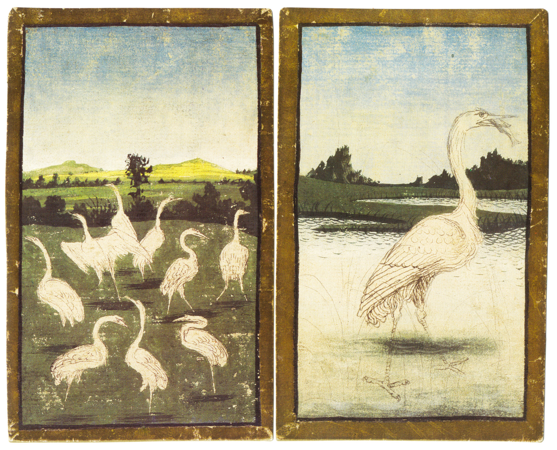 This image preserves the cards at an intermediate stage of execution: the underlying drawing is still visible, areas of colour remain unfilled, and the final modelling and finishing have yet to be applied. Such evidence is rarely accessible in surviving playing cards, which are usually discussed only as completed objects. Here, the cards read less as gaming tools and more as miniature panel paintings in progress, illustrating both the technical process and the level of artistic care invested in early luxury packs. The image underscores the playing card’s role, from its earliest history, as a vehicle for pictorial art rather than merely a functional game piece.