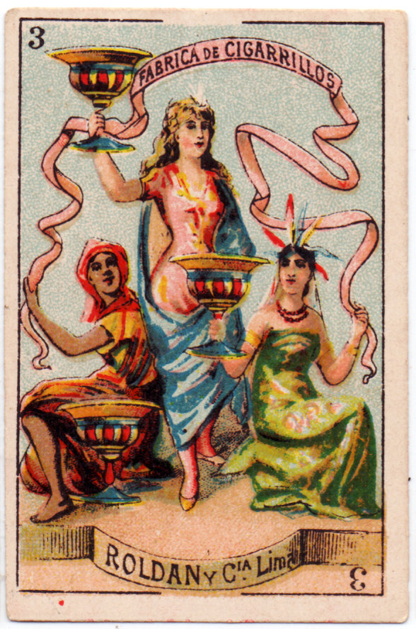 Fantasy playing cards produced for Cigarrillos El Perú by Roldan y Cía, Lima, c.1890.