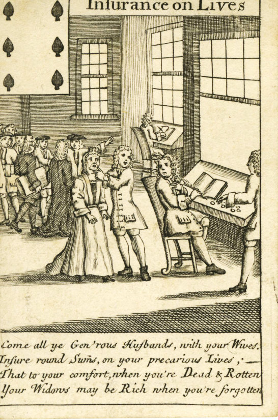 Above: “Insurance on Lives” (“bubble card”) on early life assurance, Bowles and Bowen, London, 1720–1745. WCMPC Collection.