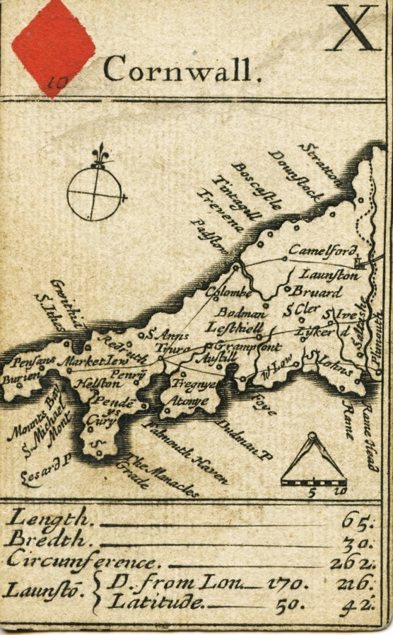 Above: county map cards of Yorkshire (left) and Cornwall (right) from Morden’s Maps, London, 1676. WCMPC Collection.