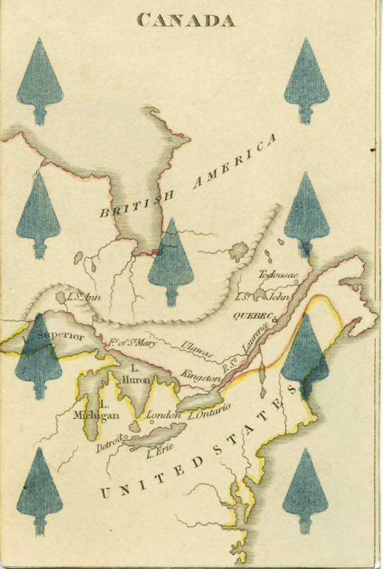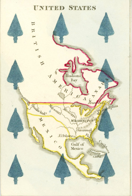 Above: map cards of the United States (left) and Canada (right) from “Hodges Geographical”, 1828. WCMPC Collection.
