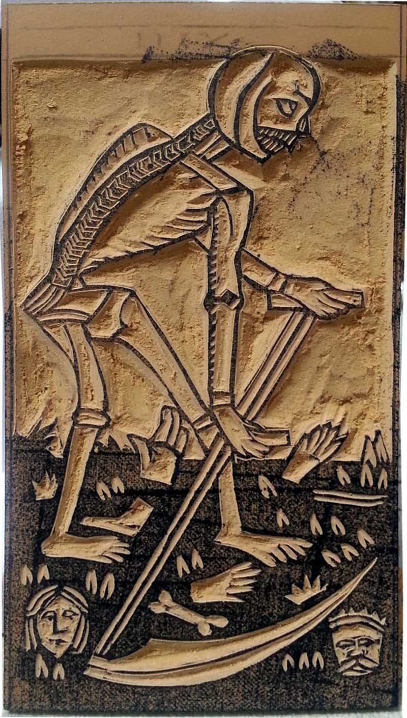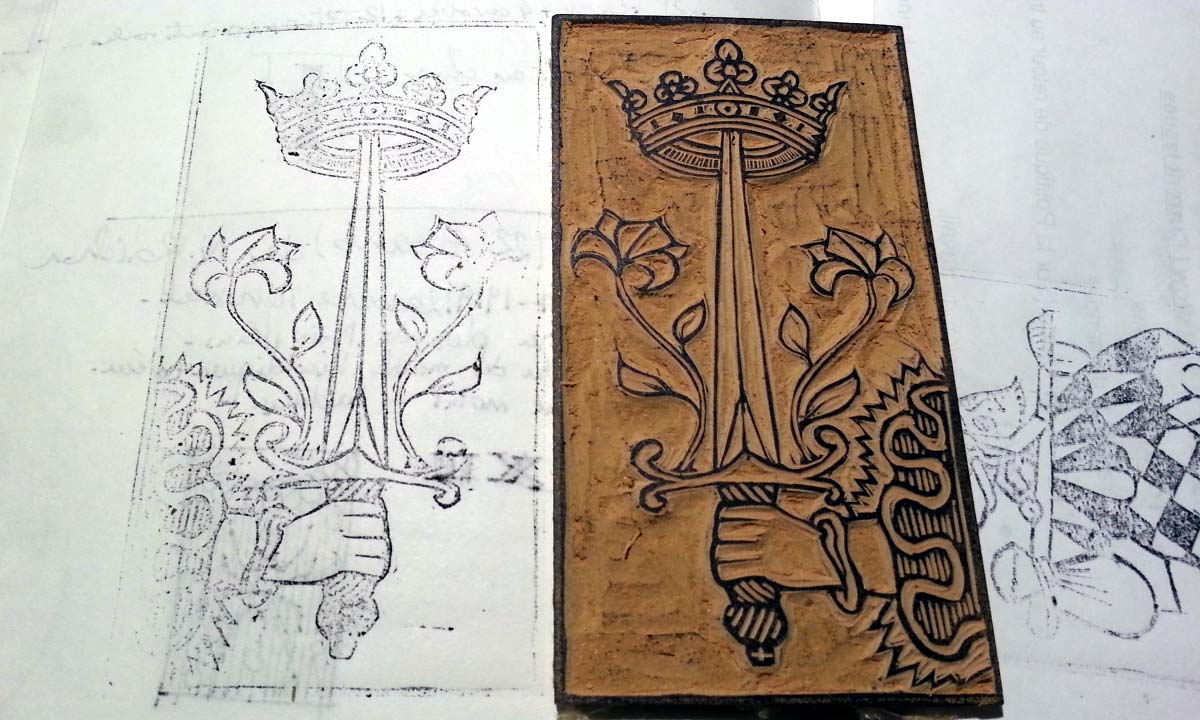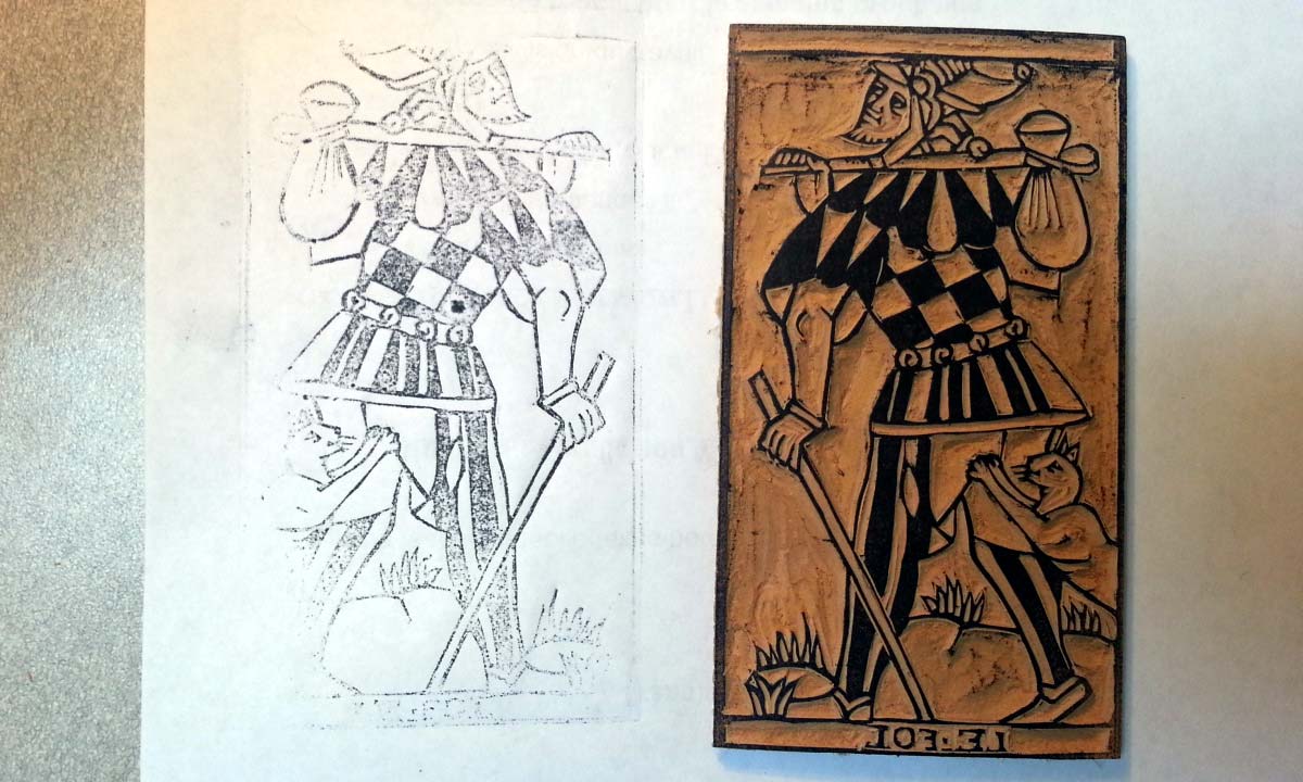 Lilian Caillaeud lino-cuts his version of the tarot by Nicolas Rolichon of Lyon c.1600