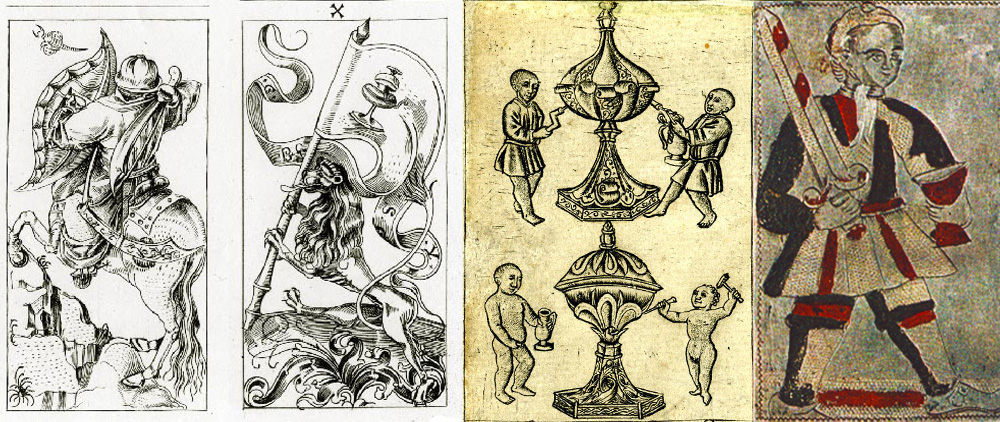 H. T. Morley (Old and Curious Playing Cards, 1931) mentions that packs from 1490 made for governors and other high dignitaries are “beautifully finished hand-drawn and painted packs” often “very beautifully finished by hand in gold, silver and colour”.