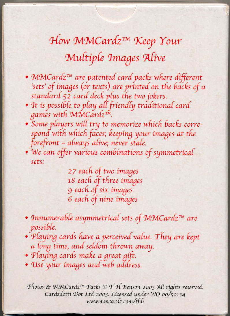 3 x 18 Photo Pack printed on the backs of a standard pack of 52 cards + 2 jokers. See the box►