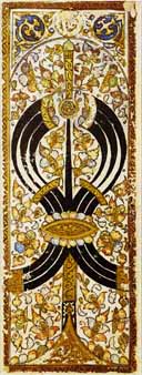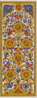 Cards from the Arabic Mamluk pack (c.1520) have closely decorated, embroidered or ?enamelled? surfaces. Although the underlying design is very simple, a lot of artistic work has been applied to the card faces. Pattern is not an essential thing, but an ornamentation of the surface. Occasionally, designs originating with one technique or medium were transposed into another. For example, point lace patterns might be transposed to embroidery, painting to engraving; sculpture might imitate metalwork or indeed architecture and then be transposed onto the flat surfaces of illuminated manuscripts or playing cards. |