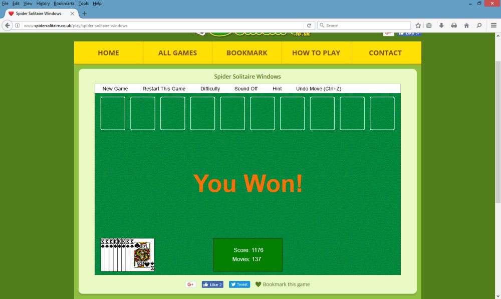 From a technical perspective, the site is clean, simple to navigate, and functional. I like the green-backed playing areas reminiscent of a baize card table, and the playing cards in the classic Windows version of Spider Solitaire are accurate representations of “standard” familiar Anglo-American designs, though other designs are employed in some of the other Spider Solitaire versions available on the web site.