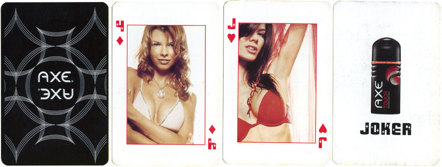 In 2010 Playboy Fragrances (Coty) released a 'gaming' set promotion comprising two decks of identical cards, one set of five dice and poker chips.