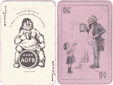 Above: Special Joker and reverse design issued on behalf of 'Ye Ancient Order of Froth Blowers', De la Rue c.1924. The back design has the signature 'G.L.S. 1924'.