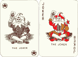 Above: early Jokers by the firm Charles Goodall & Son, London, (1821-1921) produced during the 1870s-1890s. Victor Mauger soon issued their own Joker →