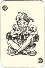 Above: early 'Bower' cards and Jokers by American manufacturers produced during the 1870s-1880s. Many of the images resemble clowns or jesters, not always ‘Jolly’; sometimes they appear slightly sinister!