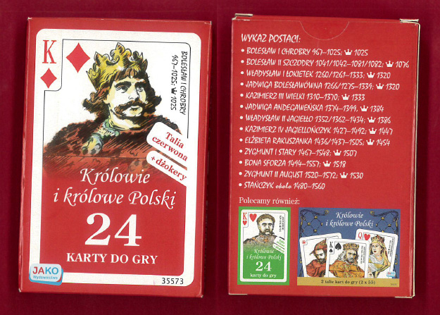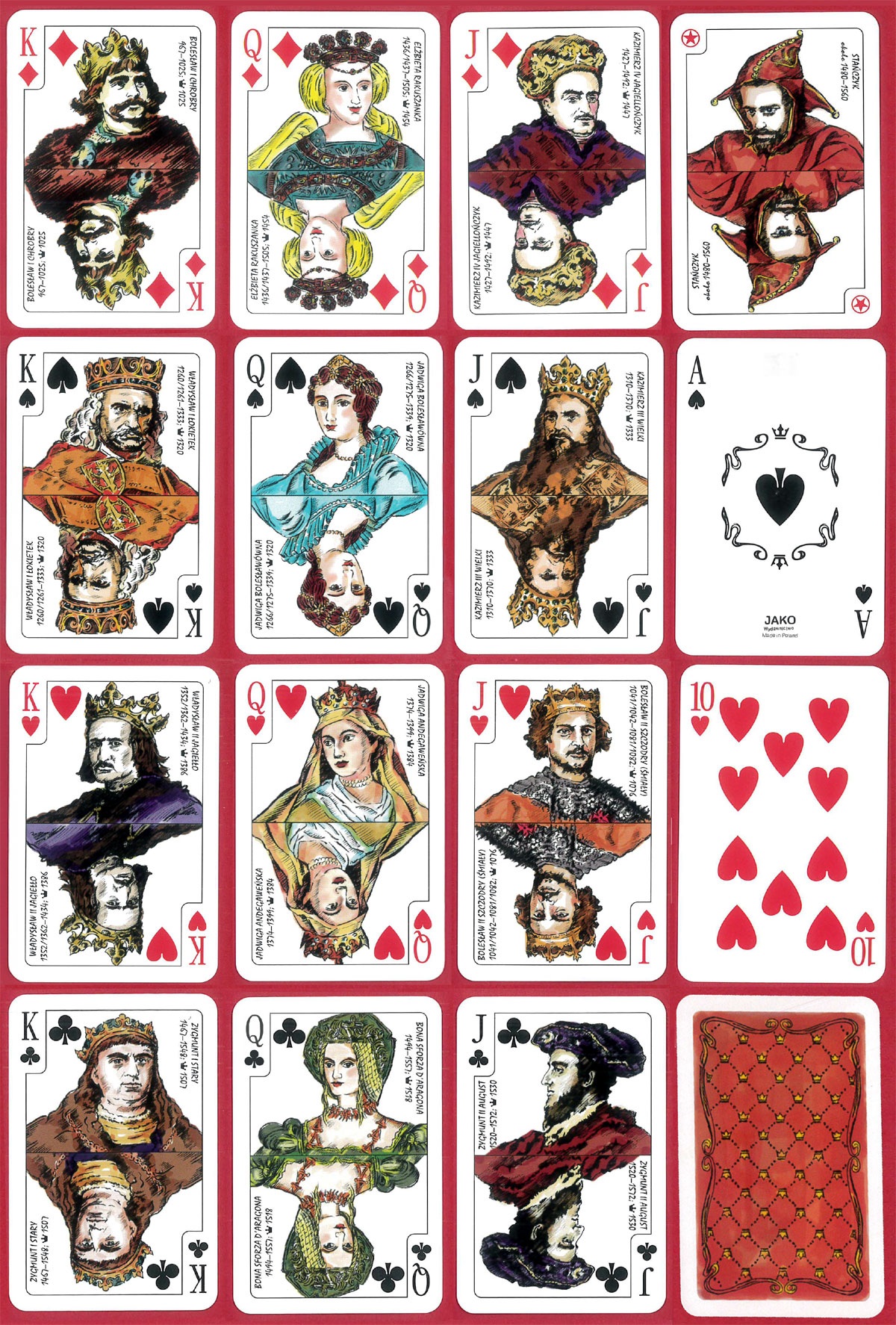 ¹ the red deck features kings from the Middle Ages, while a companion green one represents monarchs from the modern era. Wydawnictwo Jako produce a range of board games and other printed products.