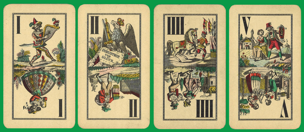Above: Industrie und Glück or Rural Scenes Tarock cards published by NIL Spielkartenfabrik, Lemberg (part of the former Austro-Hungarian Empire now known as Lviv), c.1910.