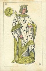 The highly individual Sicilian Tarot has the Italo-Portuguese suit system with straight, interlockin...