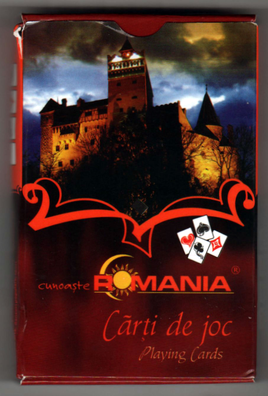Above: Discover Romania souvenir playing cards published by Editura Foton, 2010. 52 cards + jokers in box.