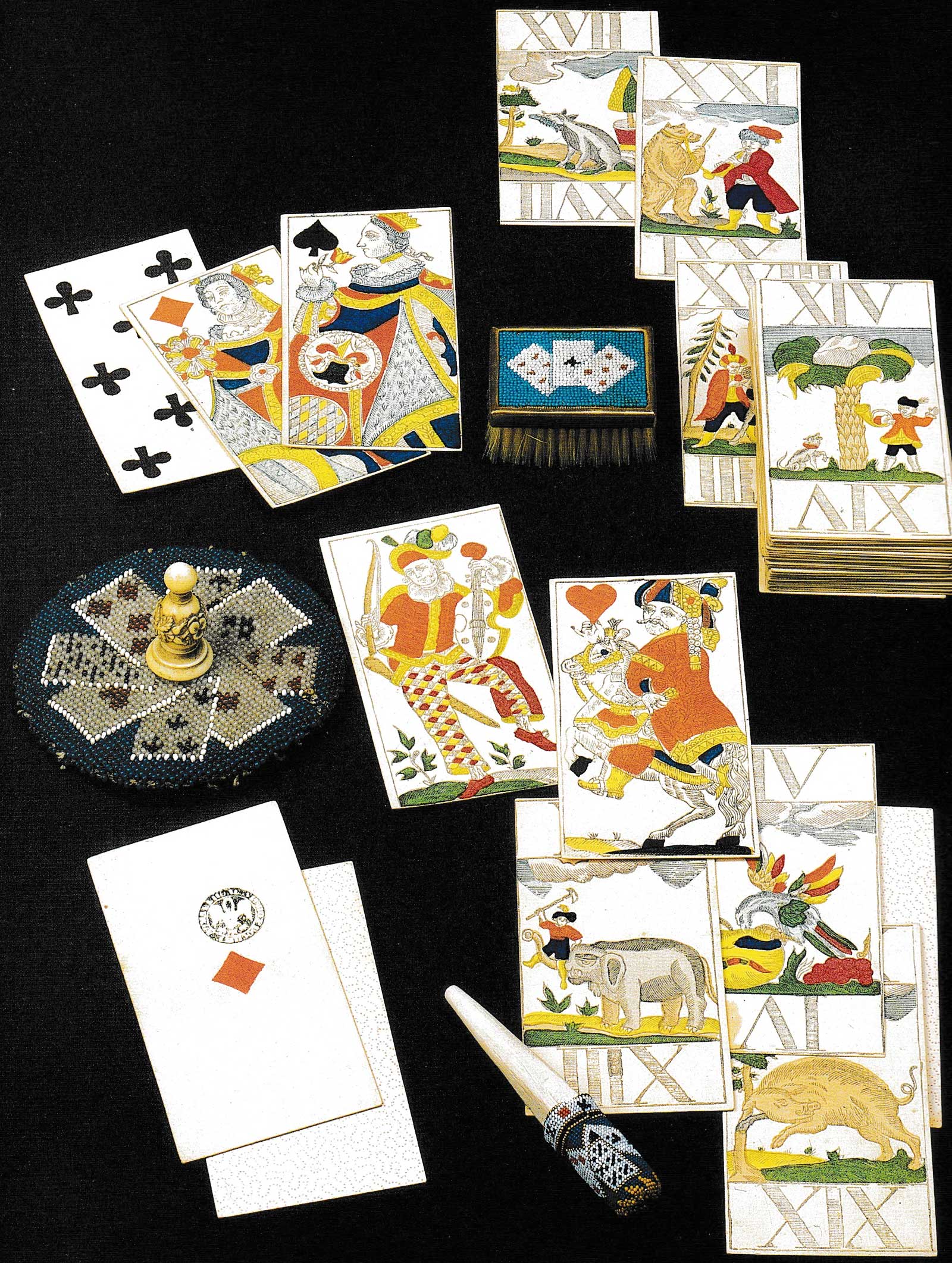 Above: cards with pseudo-medieval costumes manufactured by the Imperial Playing Card Factory, St Petersburg, c.1870. The ace of diamonds contains the stamp of the Imperial Foundling Hospital in St Petersburg to which some profits were given.
