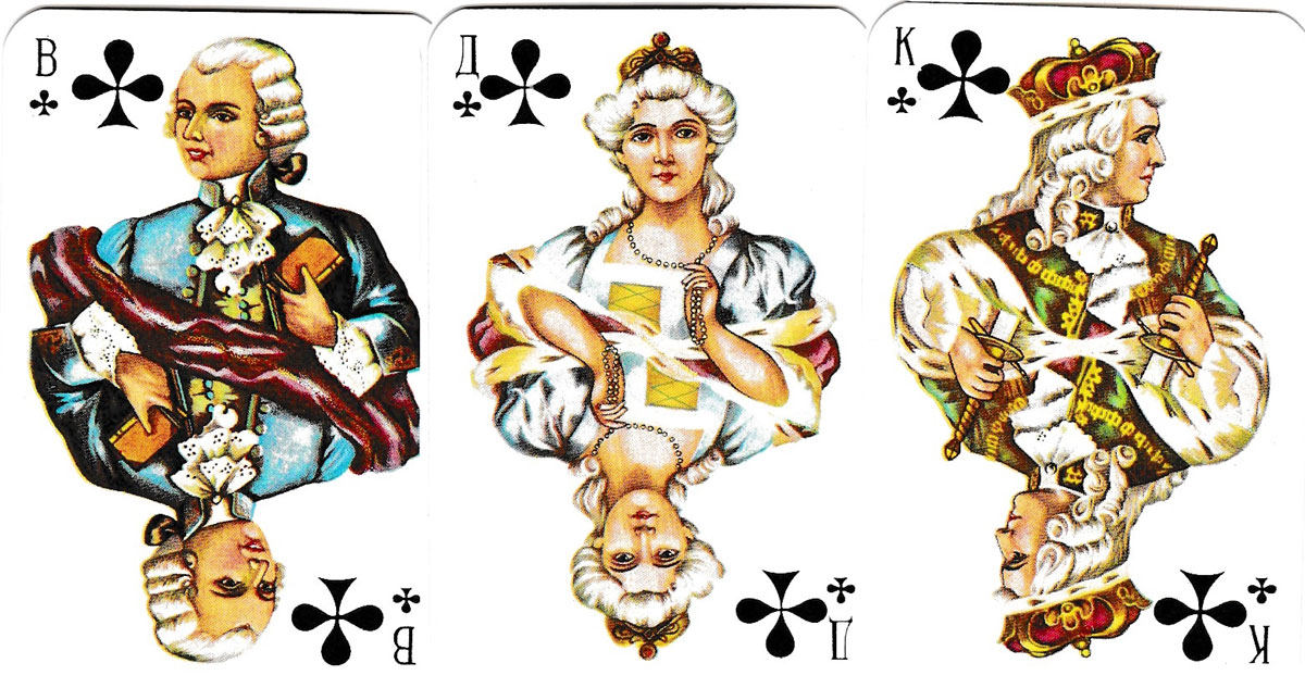 In the early 1860s the artists Mikhail Mikeshin, Adolf Charlemagne and Aleksandr Beiderman were commissioned to design new cards. Unfortunately, the negative reaction of the Tsar to these designs meant they were not produced at the time (though those by Charlemagne were eventually produced in 2018). Rokoko was produced c. 1910, and Epokha vozrozhdeniya (Age of Enlightenment) in 1875 (the latter to this day remains the most famous and popular of Russian card design).