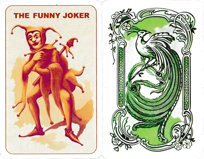 However, the aces and jokers do not have the original maritime references, and the shipping line is not recorded on the backs. In this Russian copy the court cards are more finely drawn than the original, but the aces are similar (though not identical) to the Modiano patience pack, as too is the joker – though named “THE FUNNY JOKER” (as in the original pack). See the box►