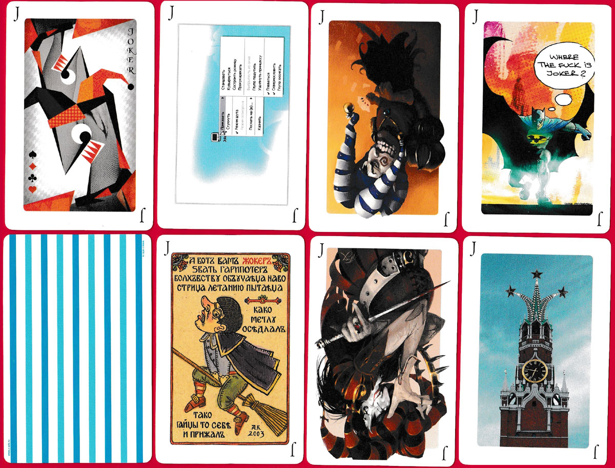 Above: Collective Arts pack designed by sixty-three collaborating artists, illustrators and designers, Russia, 2003. 52 cards and 10 jokers plus an extra card.