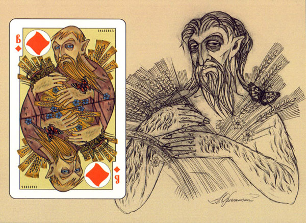 East-Slavonic Mythology playing cards, designed by Aleksey Orleansky, 1st edition numeral cards.