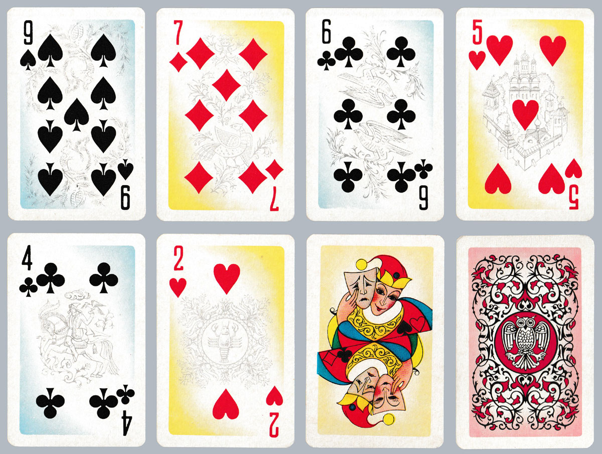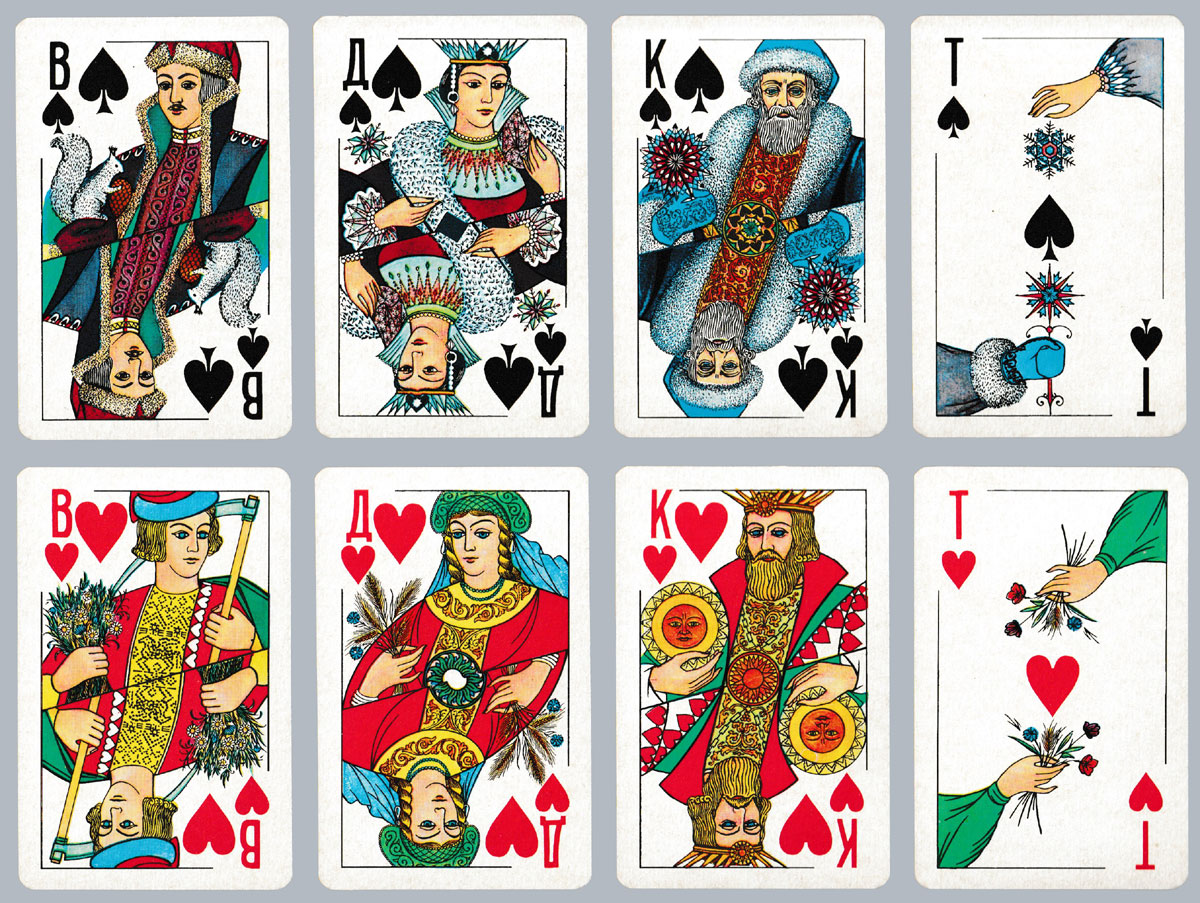 Lubok playing cards designed by Victor M. Sveshnikov. Russia, 1984.