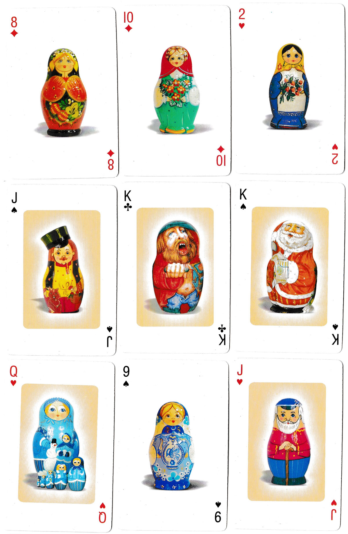 Above: Matryoshka playing cards. 52 cards + 2 jokers + extra card.