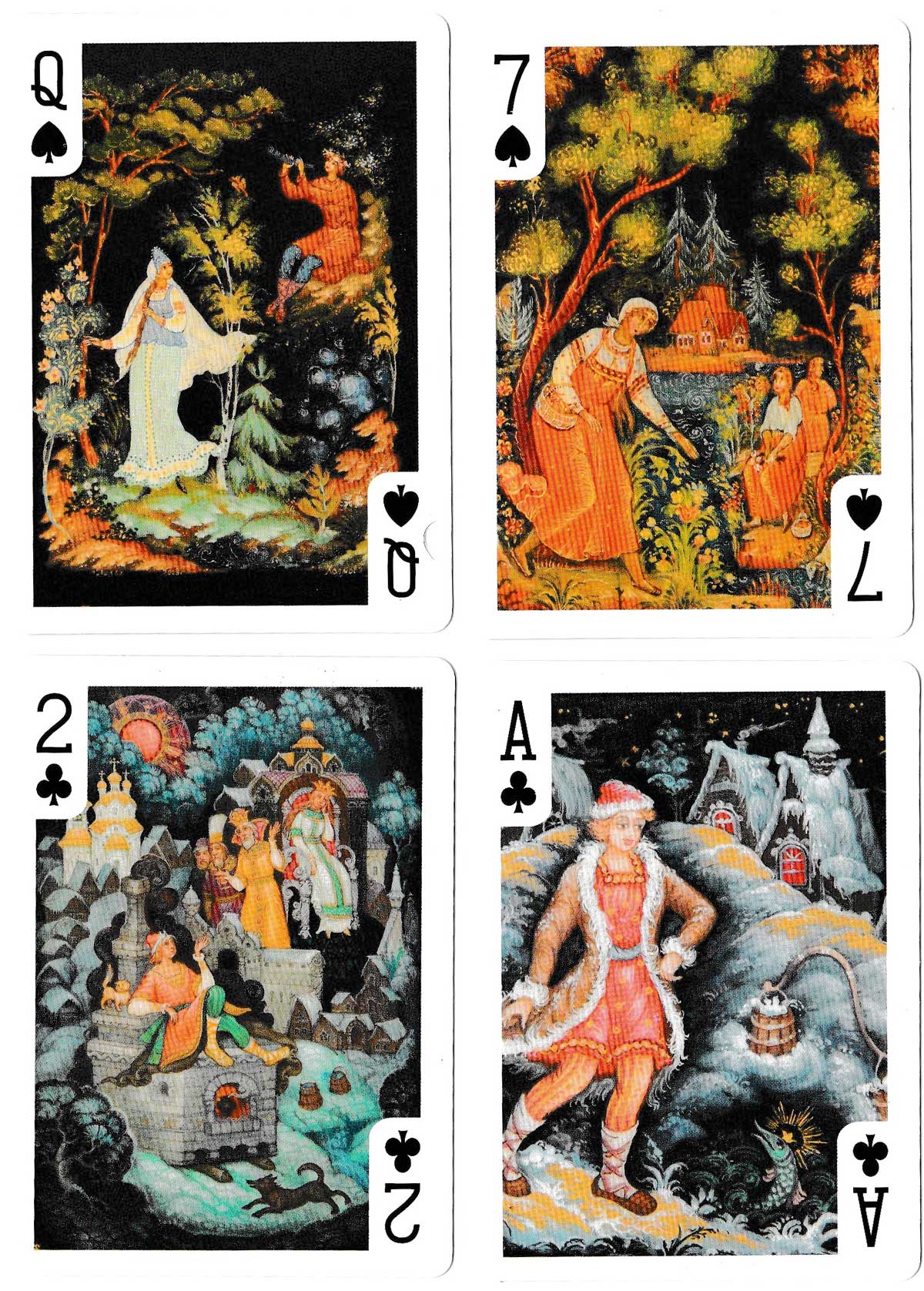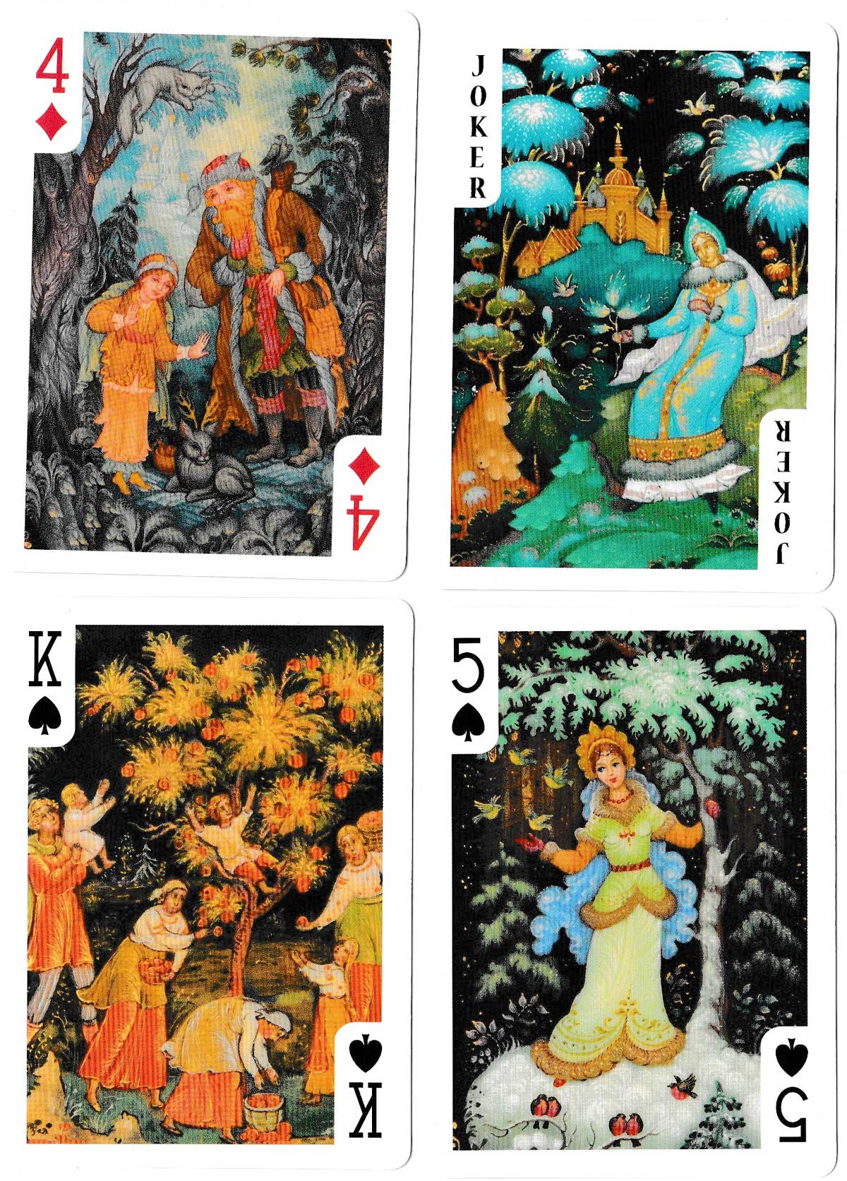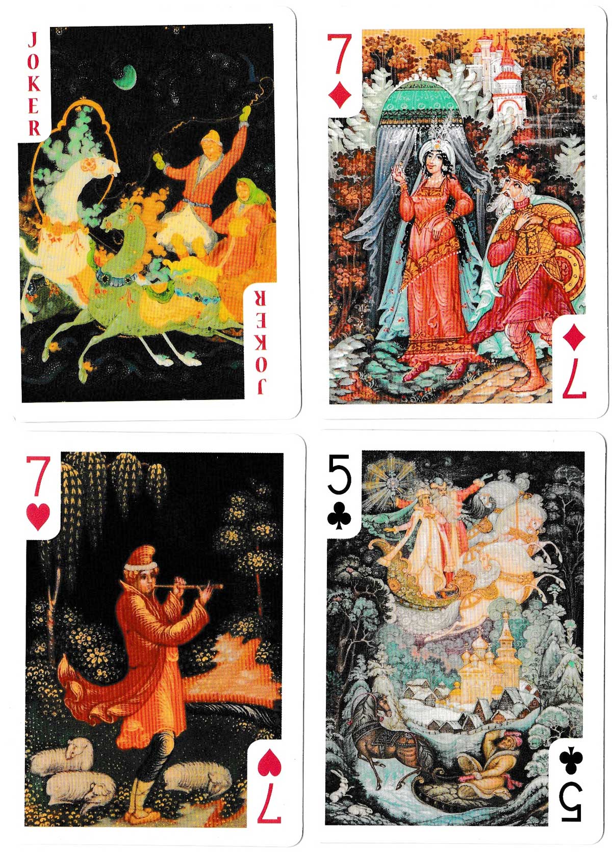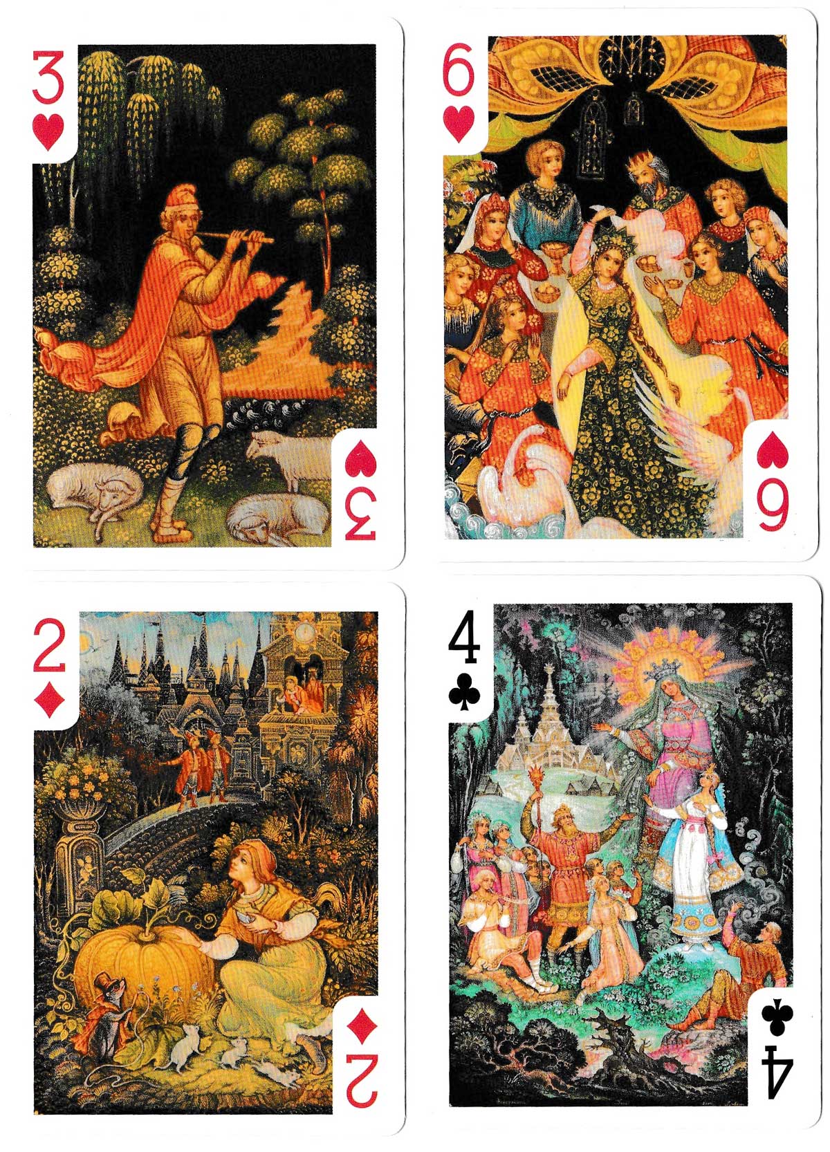 The Four Worlds playing cards by artist Aleksey Zhiryakov in the stylistic traditions of Palekh, 201...