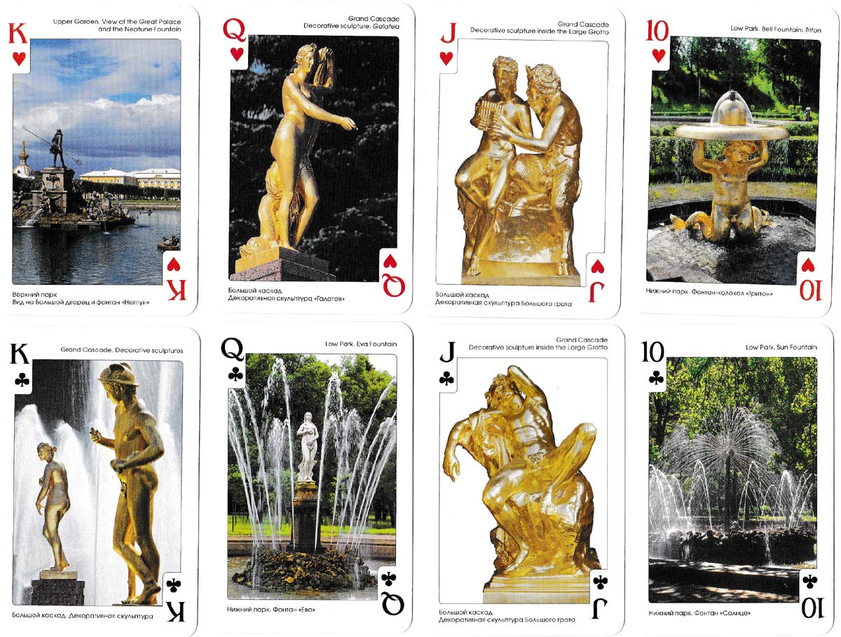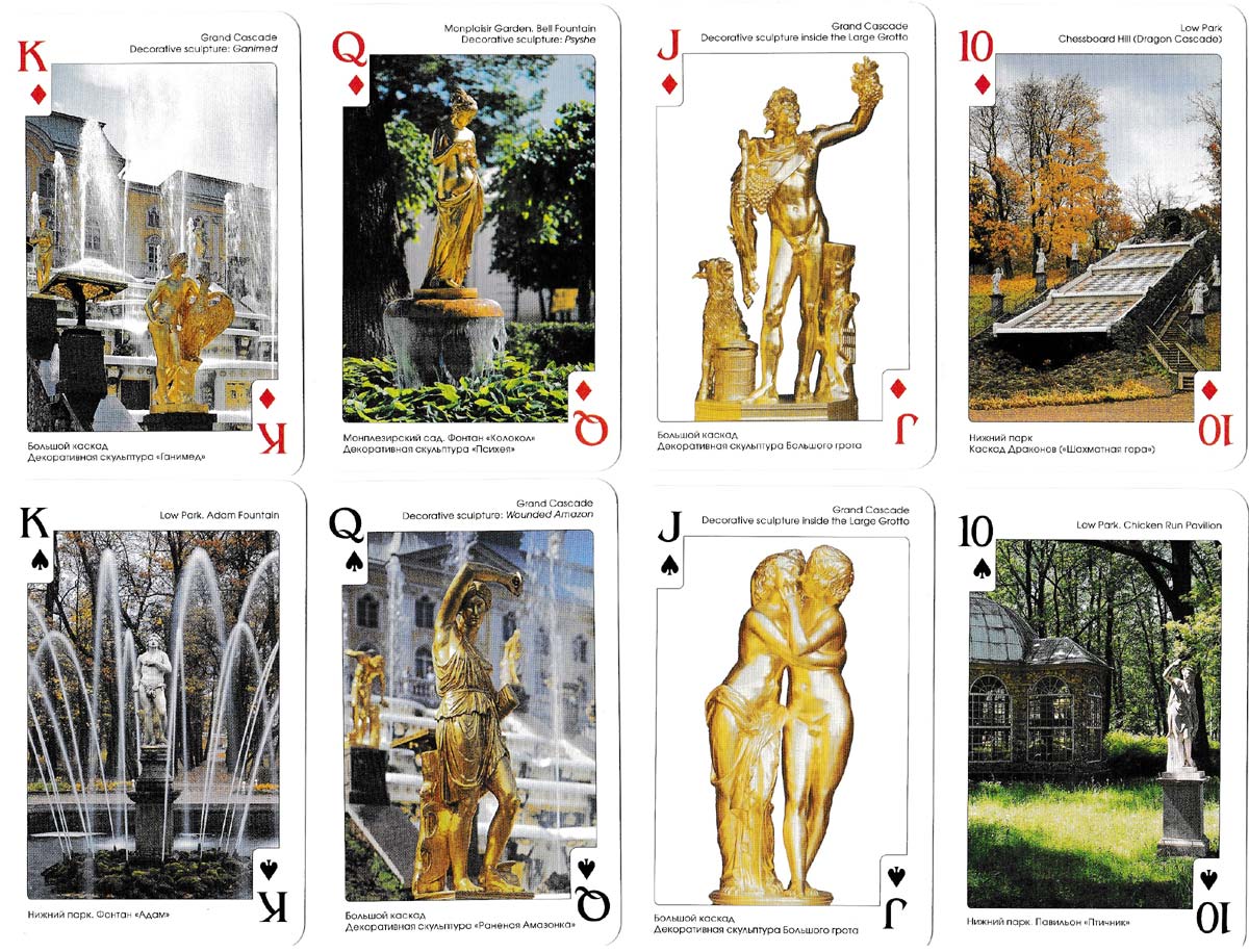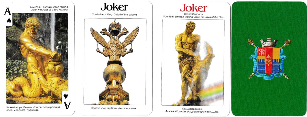 Peterhof souvenir playing cards (Petergof suvenirnye igral’nye karty) published by Mednyi Vsadnik (Bronze Horseman), St. Petersburg.