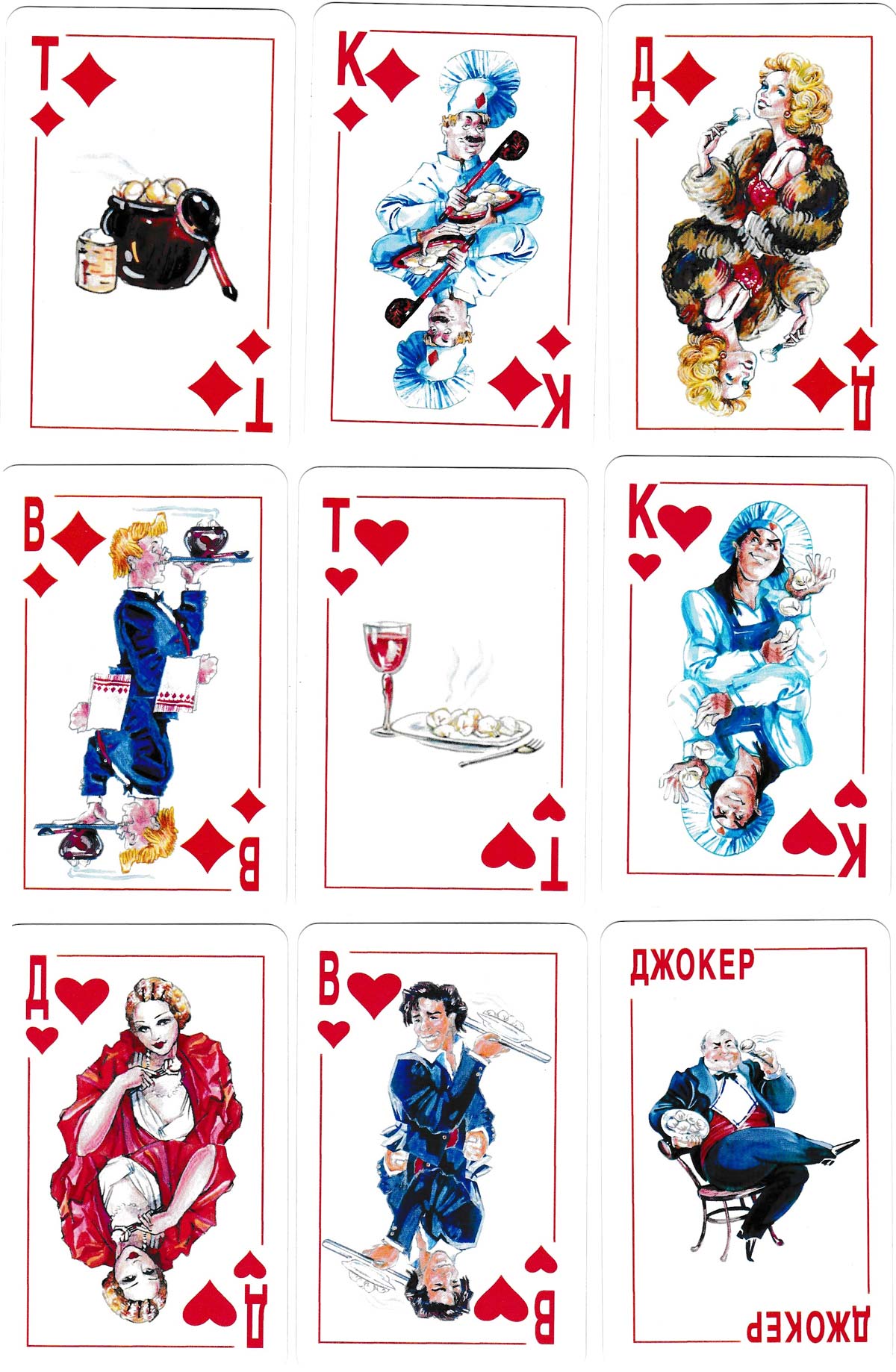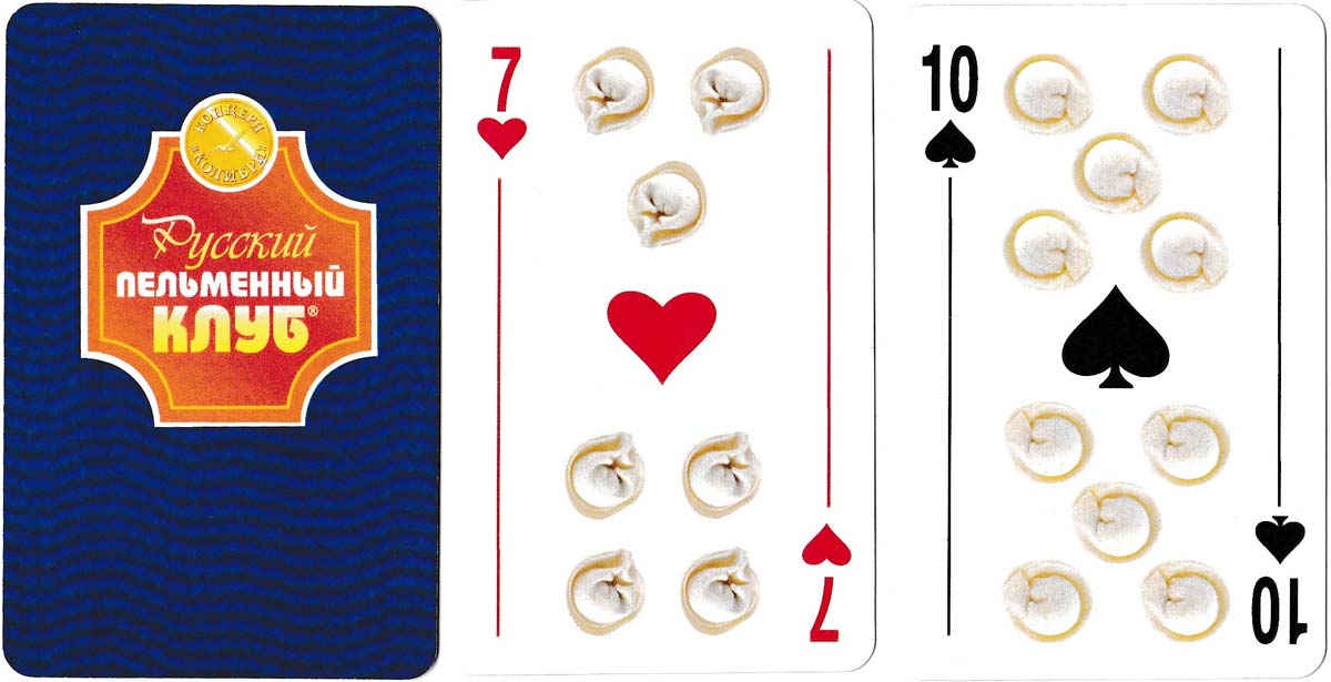 Russkii Pel'mennyi Klub (Russian Dumpling Club) playing cards designed by Evgenia Alexandrovna Belyakova.