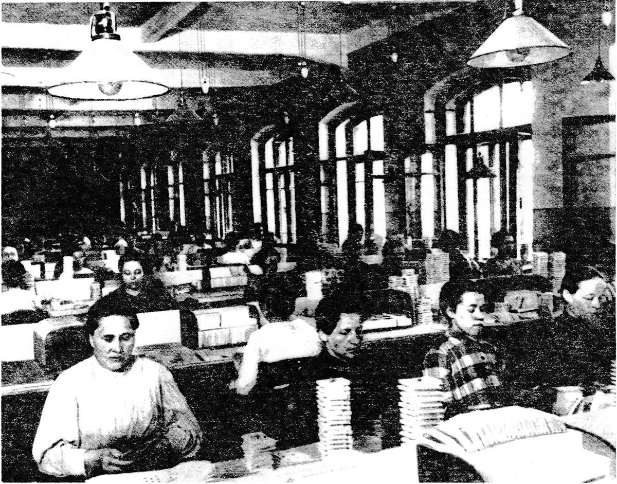 Above: workers sorting cards in the playing card factory, early 1920s. Poltora veka [3].