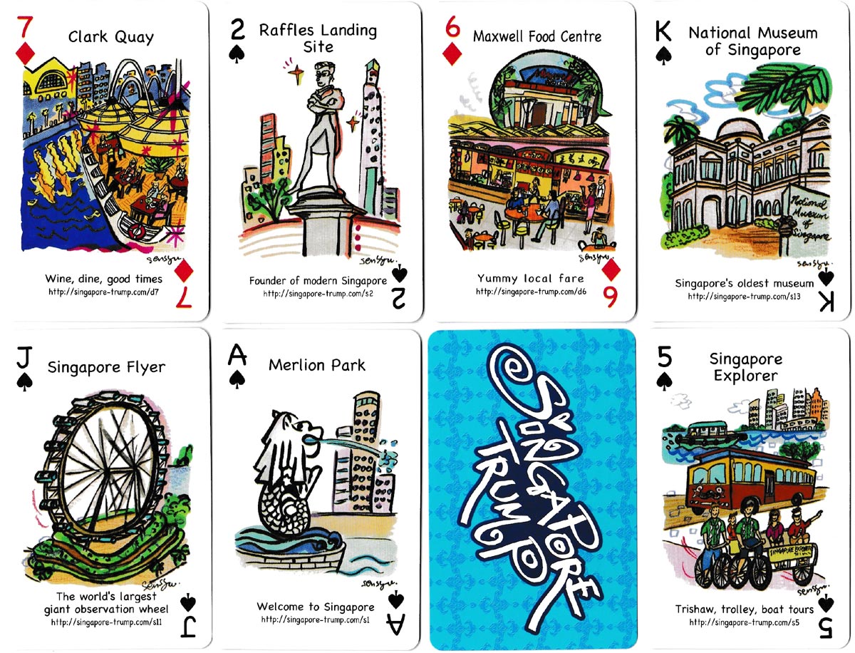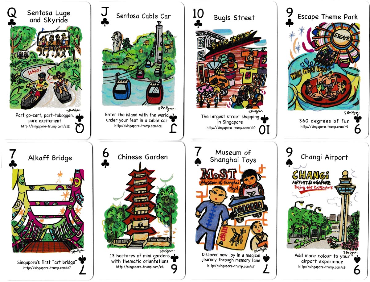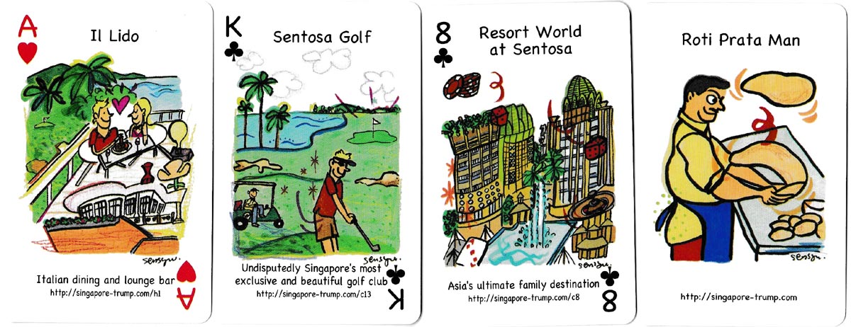 Above: “Singapore Trump” playing cards designed by Yasuko Senshu and produced by Mariposa Pte Ltd. 52 cards + 2 jokers.