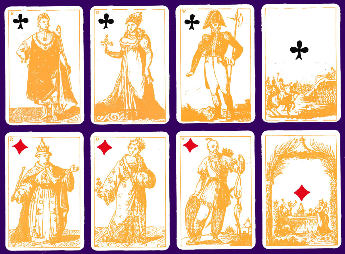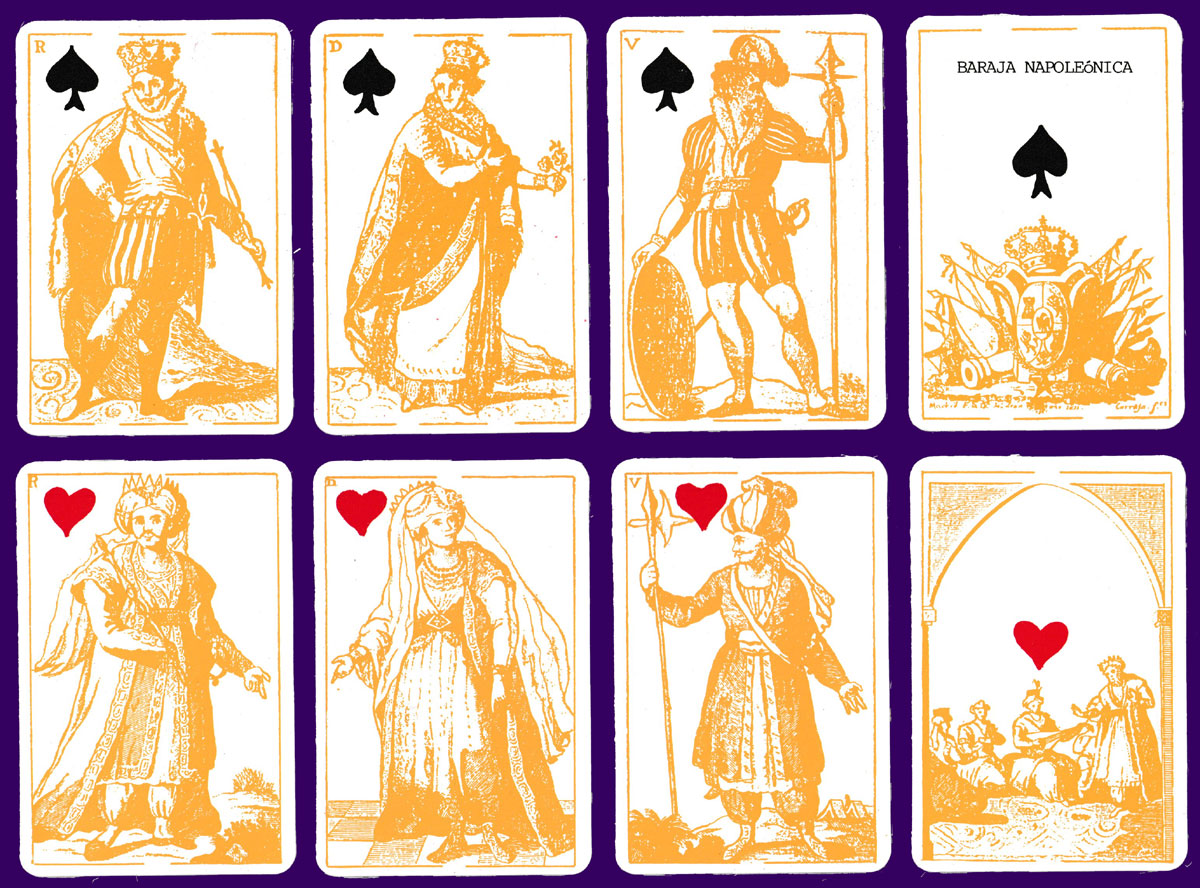 Re-edition of a French-suited Spanish pack from the Napoleonic era, with designs by J. Carrafa.