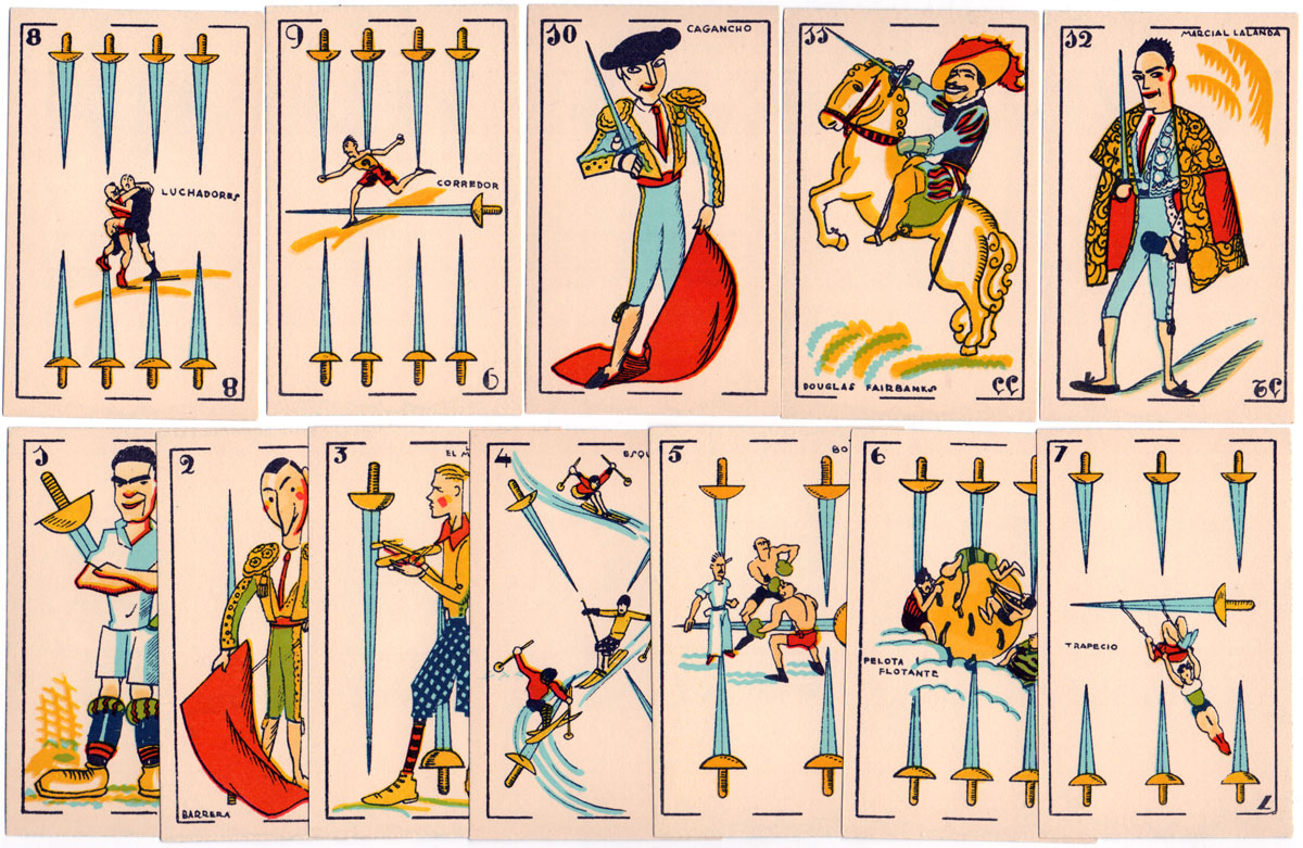 Naipes Finos No.21 "Hispano Americana", in the Castilian style, by Juan Roura, Barcelona, c.1940.