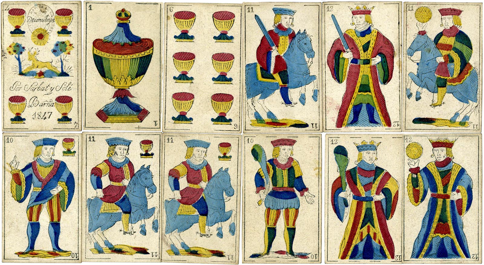 Some examples of playing cards made in Catalonia from the collection of Iris Mundus, Barcelona.