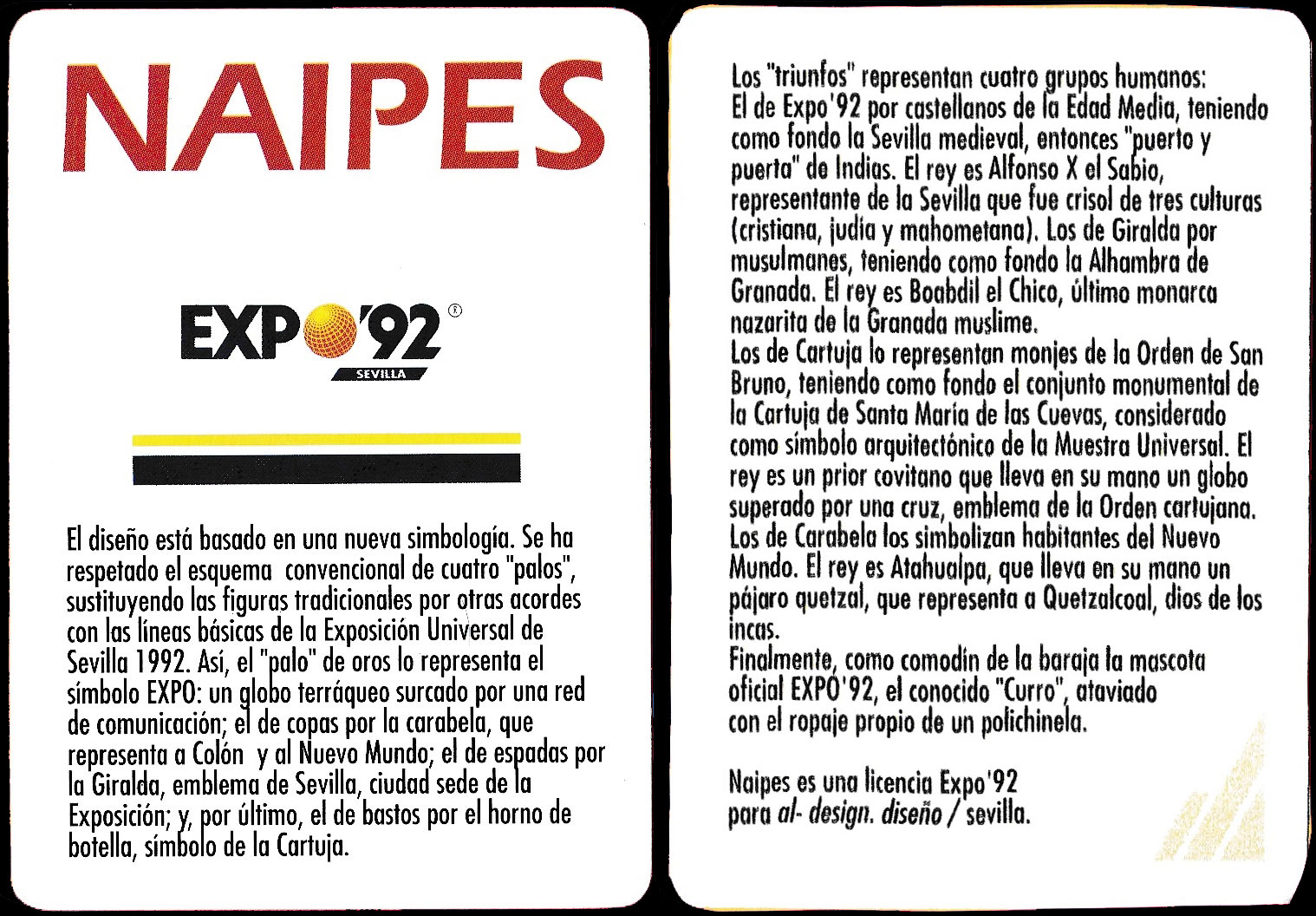 Above: Naipes Expo ’92 manufactured by Naipes Comas, 1992.