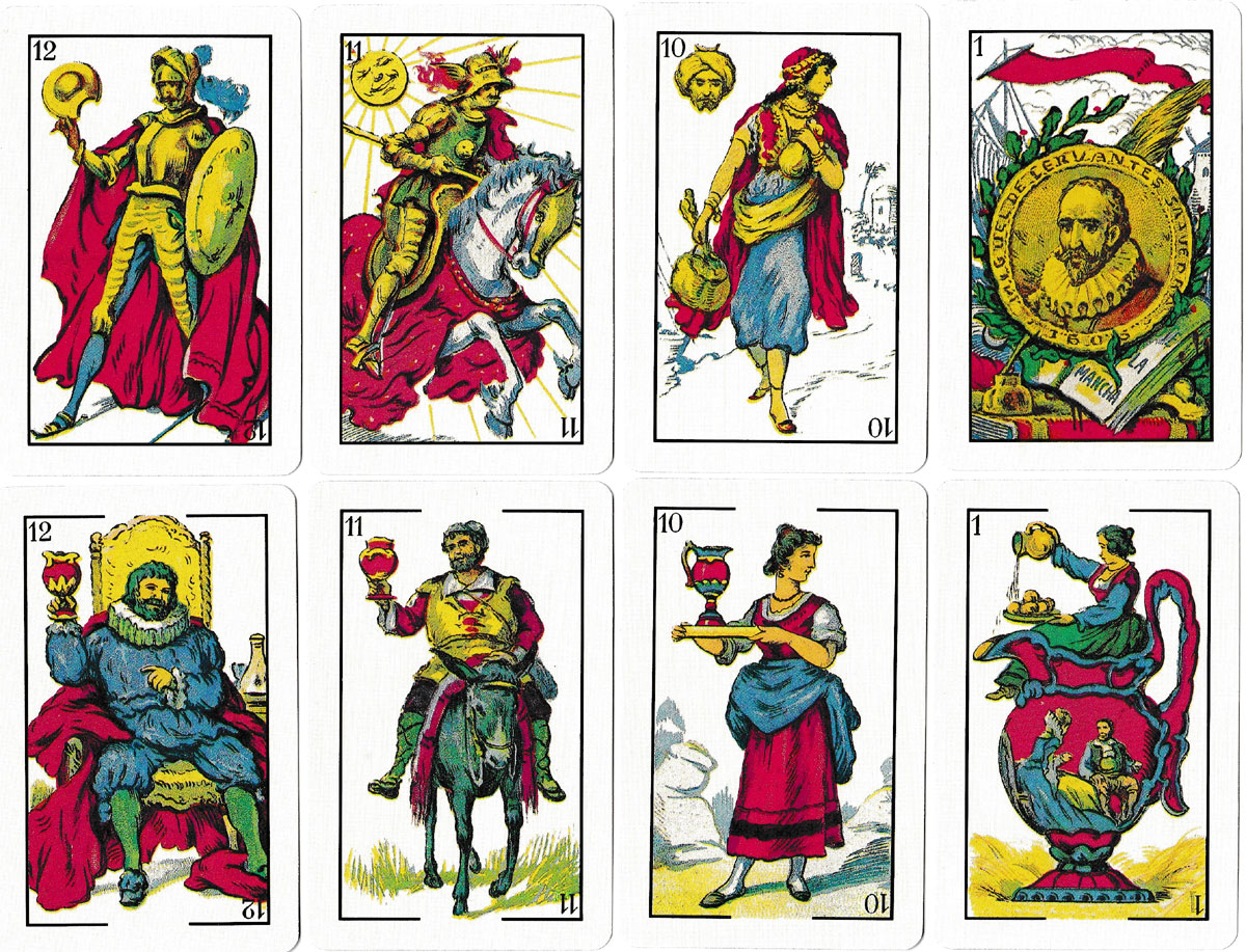 Above: Baraja El Quijote, facsimile of original deck designed by E. Pastor, reprinted by Naipes Heraclio Fournier, Spain, 1981.