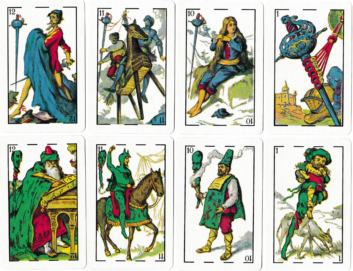 Baraja El Quijote, facsimile of original deck designed by E. Pastor, reprinted by Naipes Heraclio Fournier, Spain, 1981.