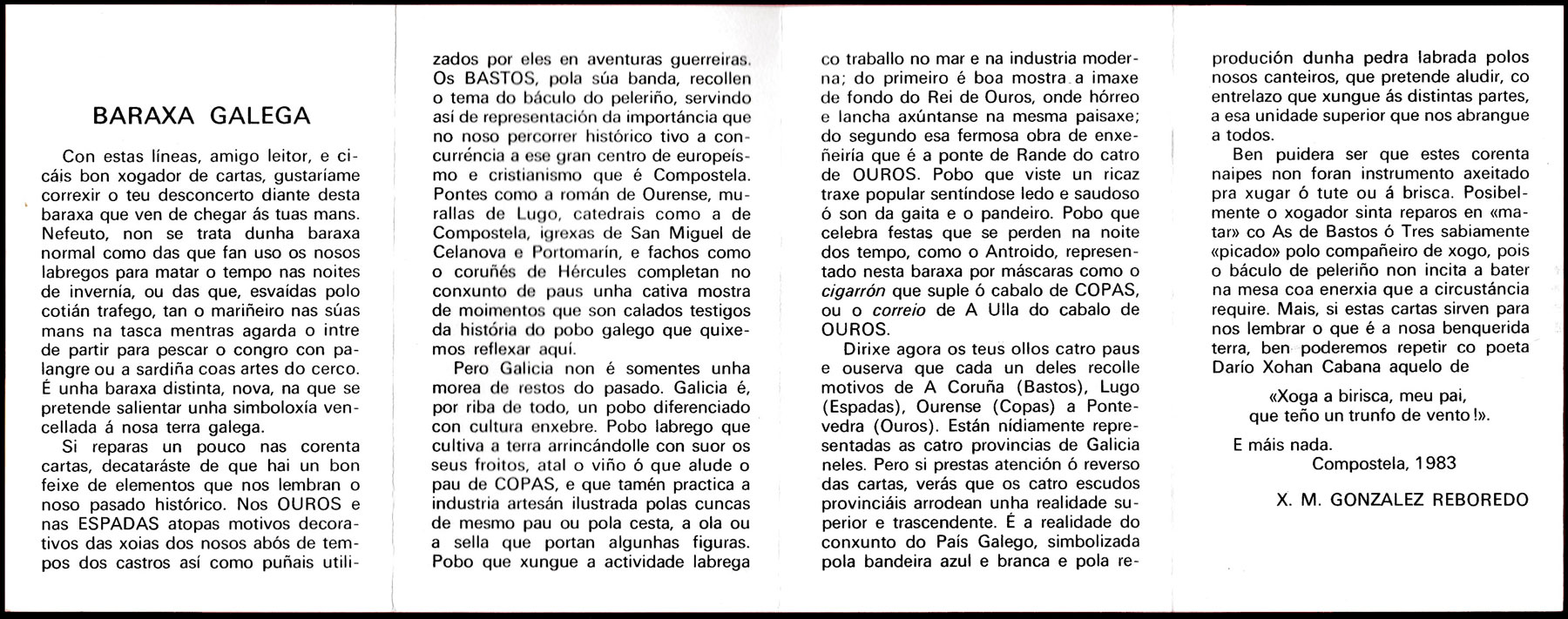 Baraxa Galega designed by F. Perez Llamosas and published by Naipes Heraclio Fournier, 1983.