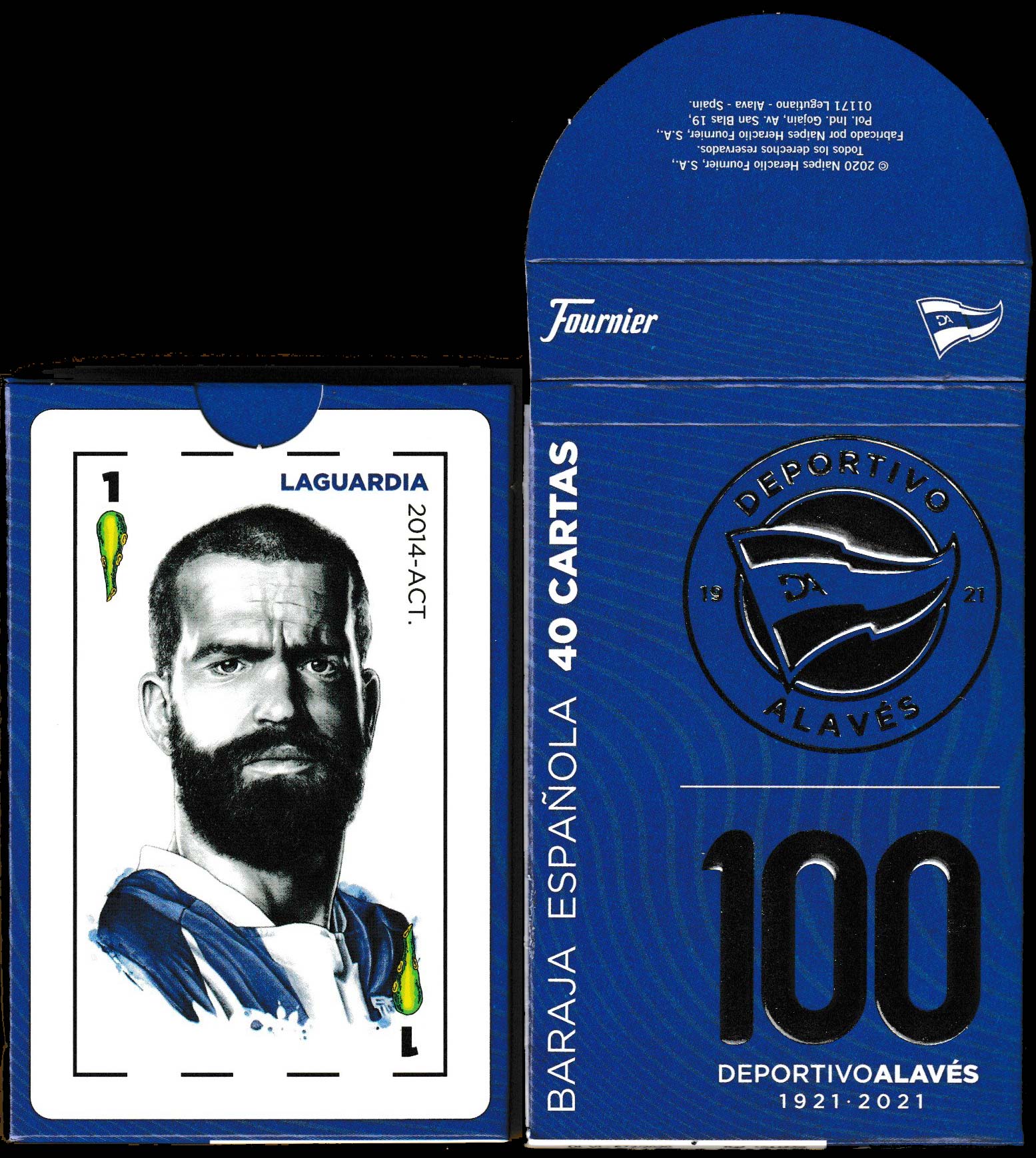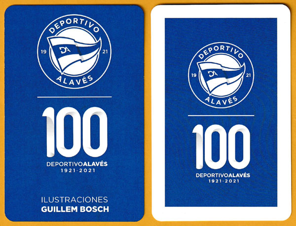 Above: Deportivo Alavés 1921-2021 centenary playing cards made by Naipes Heraclio Fournier, S.A., Legutiano, Spain, 2020. 40 cards + 1 title card in tuck box. Size: 61.5 x 95 mm. © 2020 Naipes Heraclio Fournier, S.A.