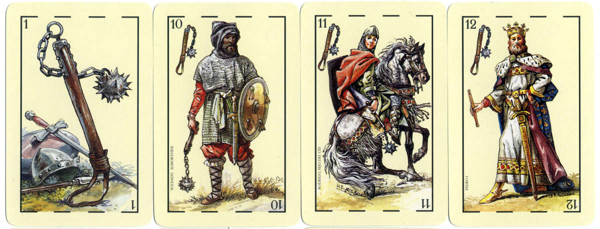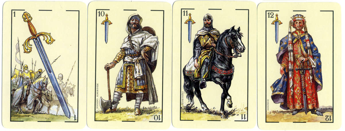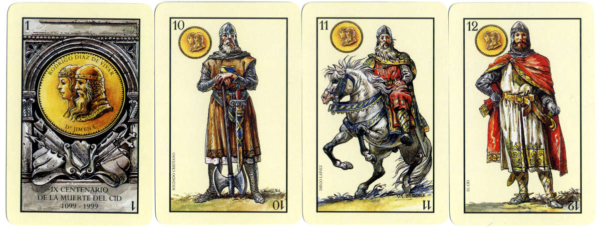 Playing cards commemorating the IX centenary of the death of ‘El Cid’ designed by Vicente S. Algora.