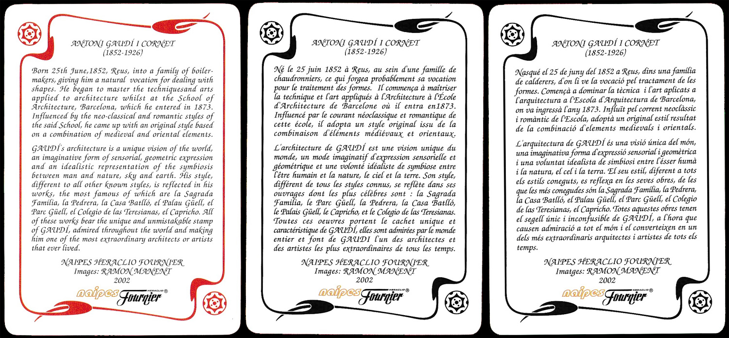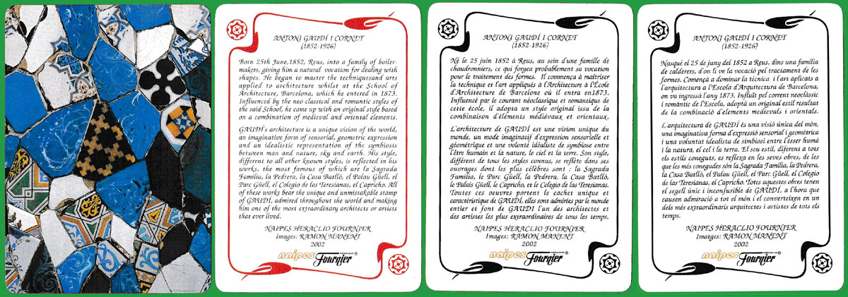 Above: Gaudí playing cards published by Heraclio Fournier, Spain, 2002.