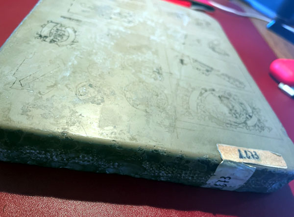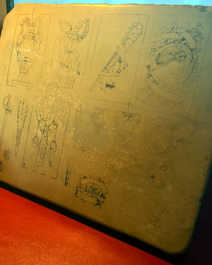 Historic lithographic stone from the Fournier playing card factory, c.1888.
