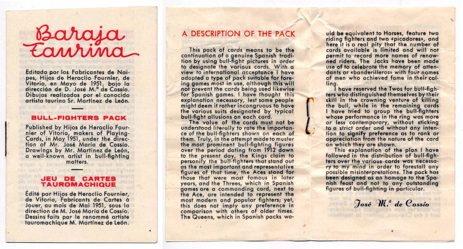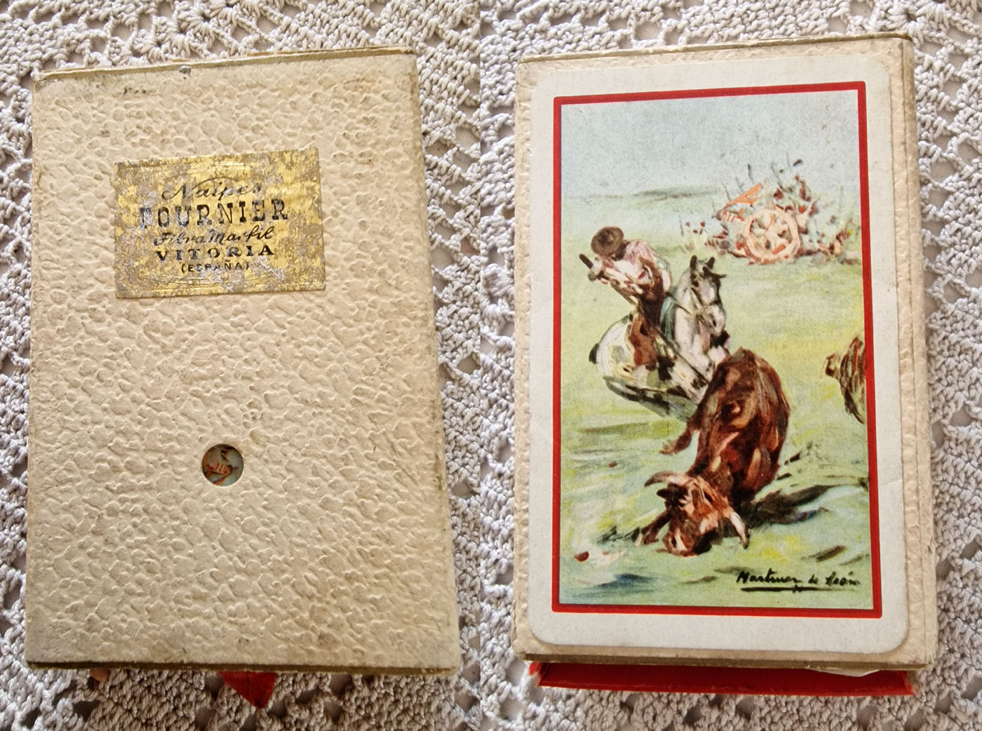 Bull-fighters pack published by Hijos de Heraclio Fournier, Vitoria (Spain) with artwork by Andrés Martínez de León, 1951.