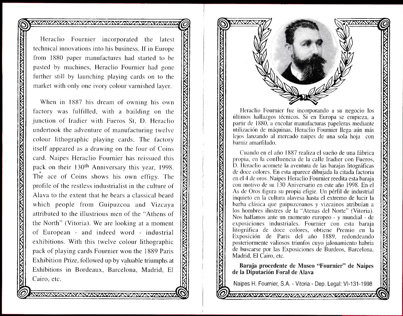 Baraja conmemorativa del 130 aniversario de naipes Heraclio Fournier (1868-1998) Spain, 1998.