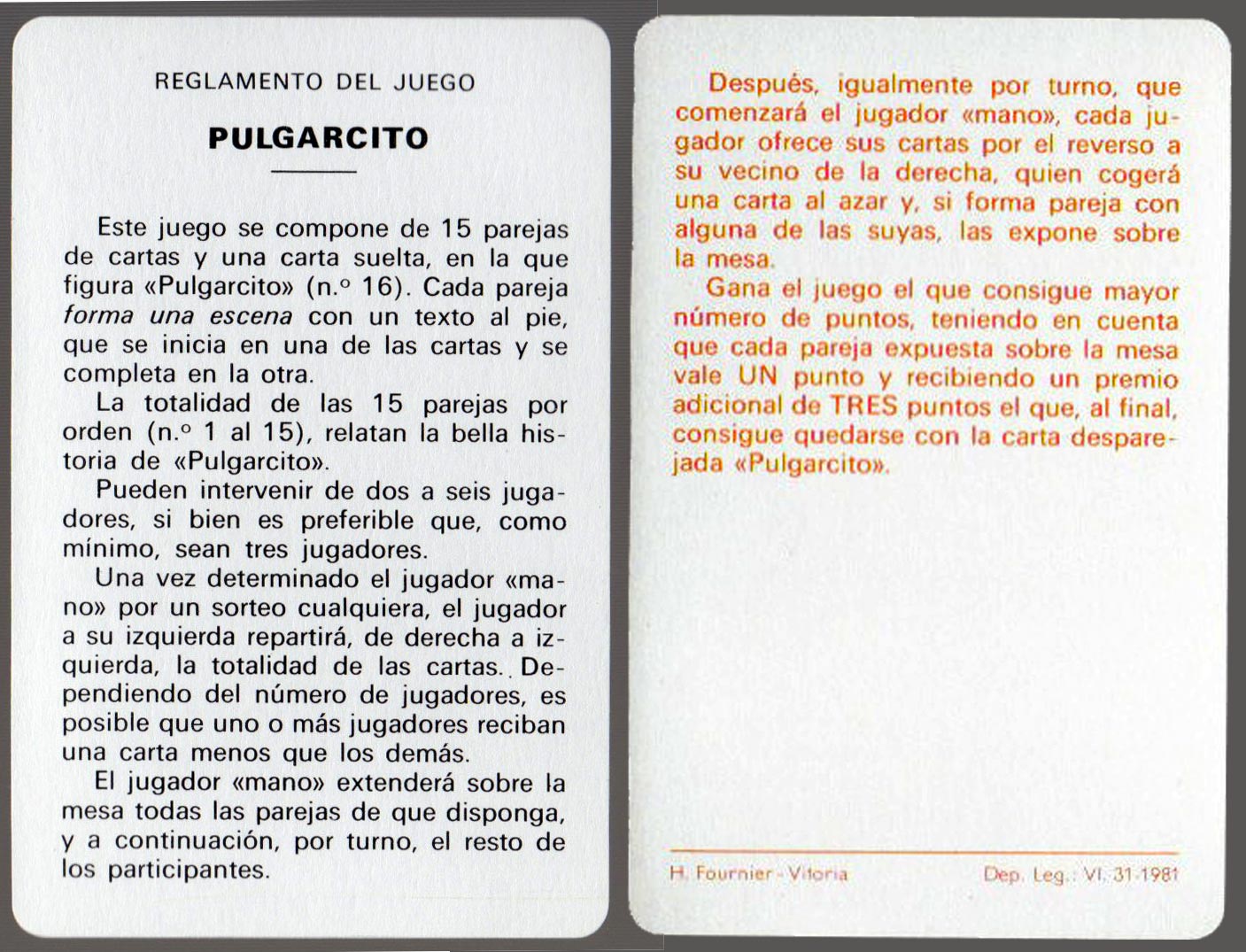 Pulgarcito (Tom Thumb) card game published by H Fournier, 1981.